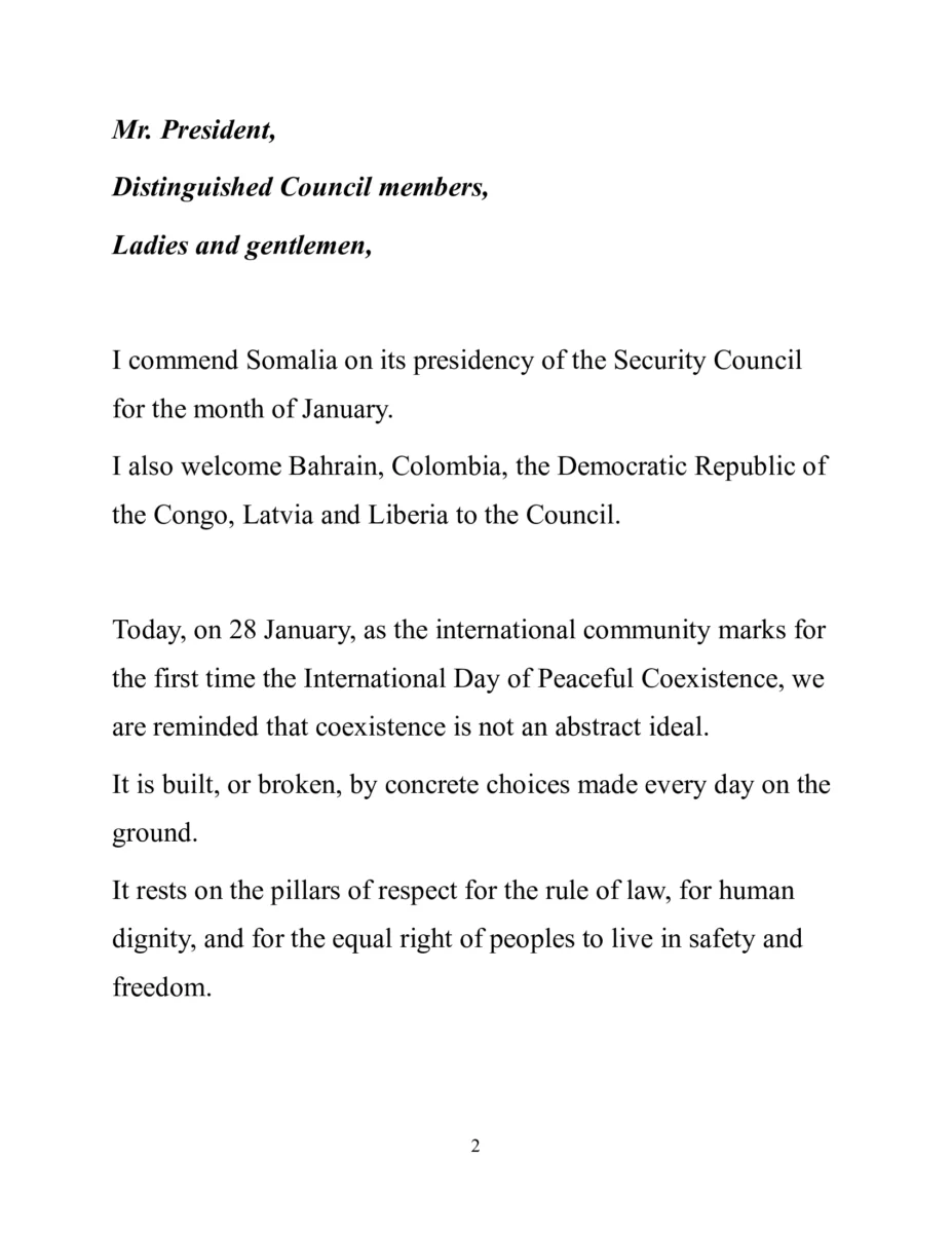 El Consejo de Seguridad de Naciones Unidas celebró el debate trimestral sobre la situación en Oriente Medio, incluida la cuestión palestina, bajo la Presidencia de la República Federal de Somalia.