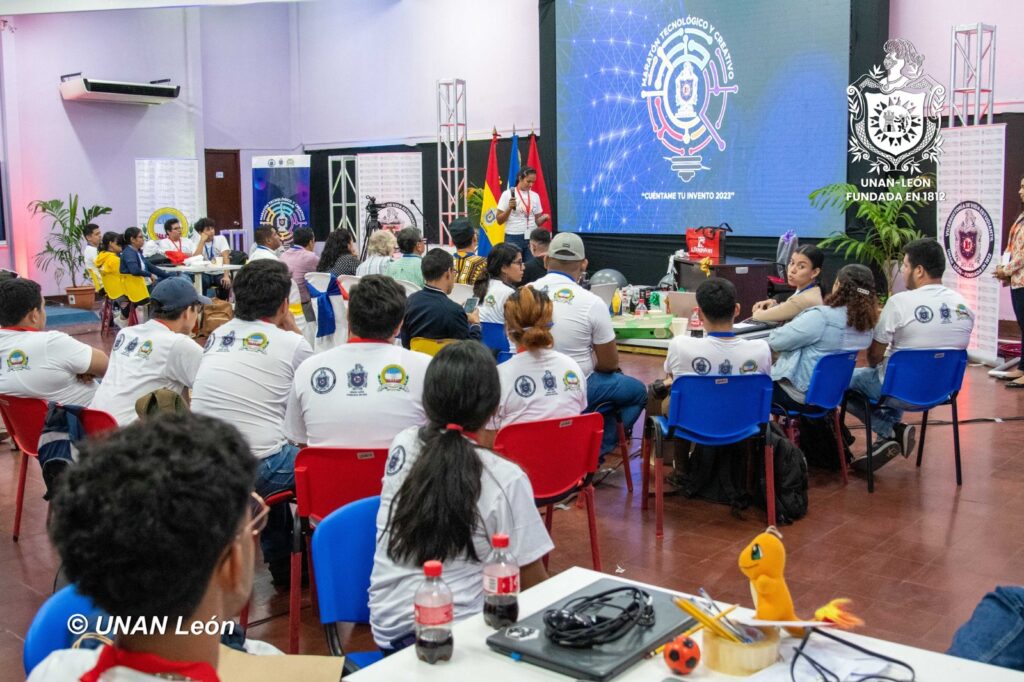 Estudiantes de las diferentes facultades, escuelas, Centros Universitarios Regionales, Programa Universidad en el Campo de la UNAN-León, participaron en el Maratón Tecnológico y Creativo “Cuéntame tu Invento 2023”.