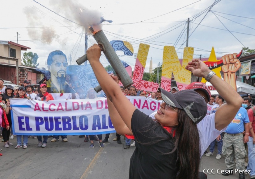 Ramona Mairena Blandón, del barrio San Judas, expresó “Jamás vamos a fallar en estas caminatas porque lo hacemos por amor a la patria, por nuestra dignidad, por nuestra soberanía y para que haya muchos más proyectos para el pueblo y como los puchos nos decían sapos en el 2018, pues con orgullo representamos al pueblo que no se vende”.
