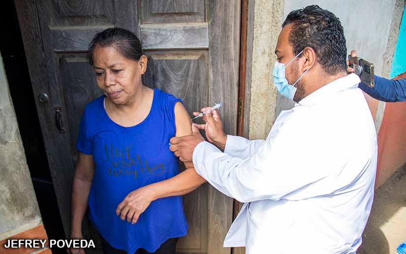 Brigadistas del Centro de Salud Altagracia realizaron jornada de vacunación casa a casa contra la Covid-19 en el barrio Frawley, distrito III de Managua.