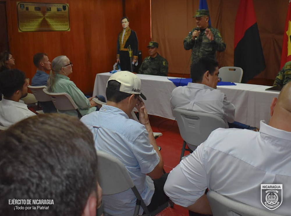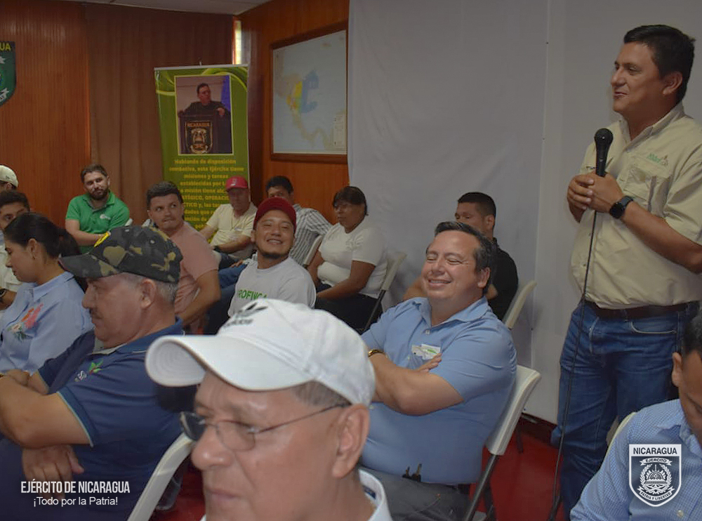 El Ejército de Nicaragua consecuente con el lema de que “Somos el Pueblo mismo uniformado trabajando en su propio beneficio”, el 3 de octubre de 2025, a través del jefe del 6 Comando Militar Regional, Coronel Inf. DEM Osmín Edgardo García, acompañado por el jefe del Estado Mayor, Coronel Inf. DEM Rodolfo Antonio González, participó en reunión con 35 representantes de empresas exportadoras de café de los departamentos de Matagalpa y Jinotega, con el objetivo de evaluar y escuchar sus planteamientos relacionados al fortalecimiento del Plan Permanente de Seguridad en el Campo, Lucha Contra el Abigeato y Plan de Protección y Seguridad a la Cosecha Cafetalera, Ciclo 2025-2026.