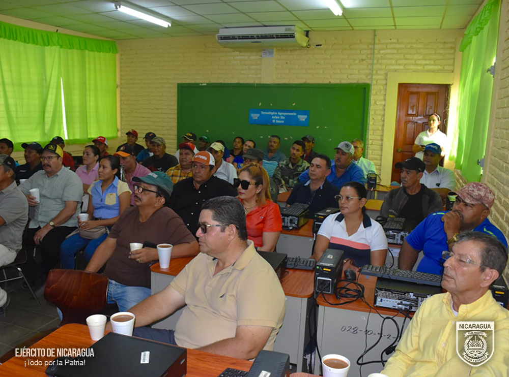 El Ejército de Nicaragua consecuente con el lema de que “Somos el Pueblo mismo uniformado trabajando en su propio beneficio”, el 31 de marzo de 2025, a través del jefe del 2 Comando Militar Regional, Coronel Art. DEM Ramón Oniel Porras González, participó en reunión con 50 productores de diferentes comunidades del municipio de El Sauce, departamento de León, con el objetivo de evaluar y escuchar sus planteamientos relacionados al fortalecimiento del Plan Permanente de Seguridad en el Campo, Plan de Lucha Contra el Abigeato y del Plan de Protección de los Recursos Naturales y el Ambiente.