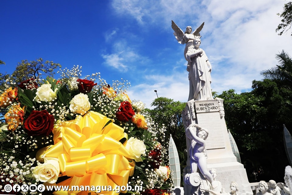 Asimismo, una delegación del Ministerio del Interior y del Ejército de Nicaragua rindieron homenaje a Rubén Darío en el monumento ubicado en el Parque Central de Managua.