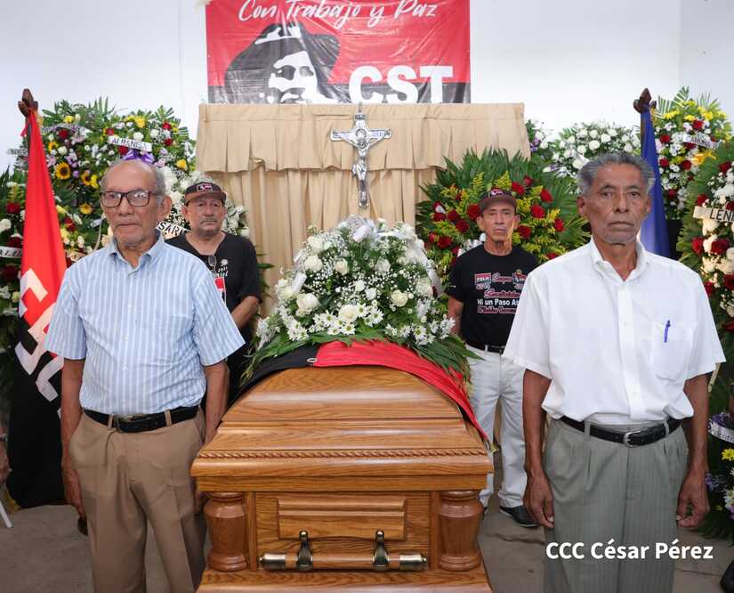 Su féretro permaneció en las instalaciones de la CST, rodeado de ofrendas florales enviadas por organizaciones sindicales, empresas, instituciones del Estado, del presidente y vicepresidente del país, Daniel Ortega y Rosario Murillo.