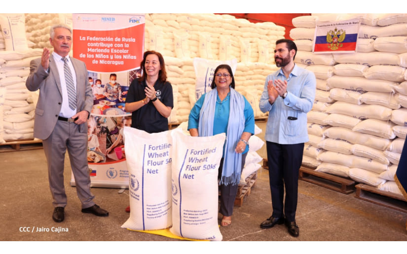 La Federación de Rusia entregó a Nicaragua a través del Ministerio de Educación 348.5 toneladas métricas de harina de trigo, para fortalecer el programa de la merienda Escolar del próximo año.