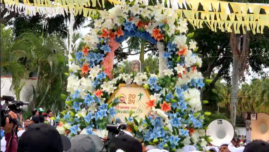 La imagen del Santo Milagroso es cargada por miembros del Comité Tradicional de Cargadores y Promesantes, iniciando así su peregrinación.