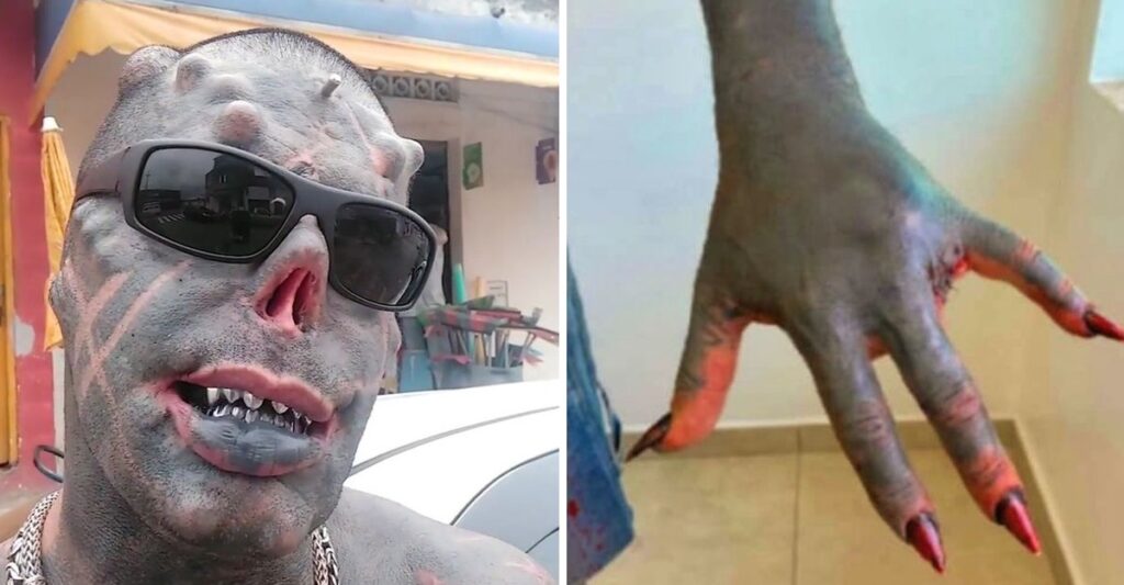 Este hombre de origen brasileño, tiene el 85% de su cuerpo cubierto de tatuajes y ha sido apodado como el “Diablo Humano”.