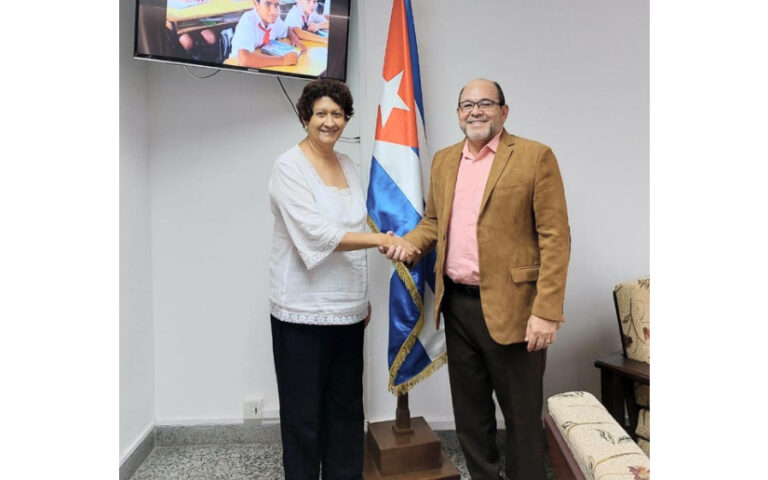 Ayer Lunes 20 de Junio, nuestra Embajada en Cuba sostuvo un fraterno encuentro con la Doctora en Ciencias Pedagógicas, Ena Elsa Velásquez Cobiella, Ministra de Educación de la República de Cuba, para conversar sobre el fortalecimiento de las relaciones de Cooperación en Temas de Educación que unen a nuestros Pueblos. La Ministra Ena Velásquez agradeció el Encuentro, y reiteró la disposición […]