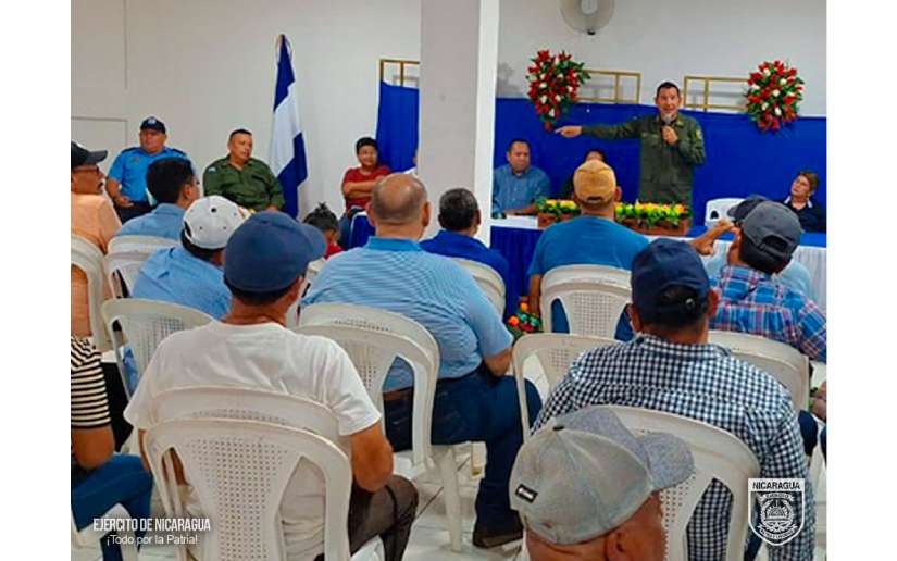 Durante la reunión, el Coronel García, transmitió el saludo del Comandante en Jefe del Ejército de Nicaragua, General de Ejército Julio César Avilés Castillo y les manifestó el compromiso de la institución, de continuar trabajando con las autoridades municipales y productores, para que sigan realizando sus labores en un ambiente de seguridad, estabilidad, tranquilidad y paz.