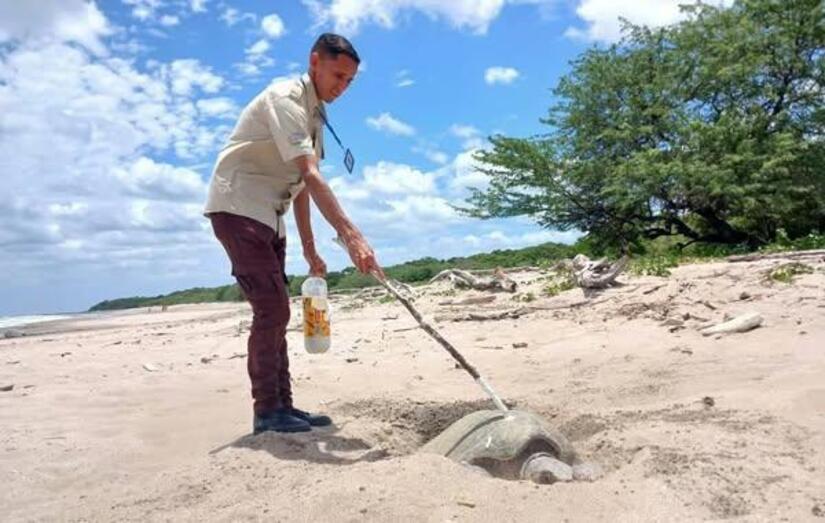 Guardas de Áreas de Conservación del Ministerio del Ambiente y de los Recursos Naturales, MARENA junto a Efectivos del Ejército de Nicaragua, protegieron la arribada de 767 tortugas marinas de la especie Paslama, que depositaron sus huevos en las cálidas arenas del Refugio de Vida Silvestre Río Escalante Chacocente, en Santa Teresa, Carazo.
