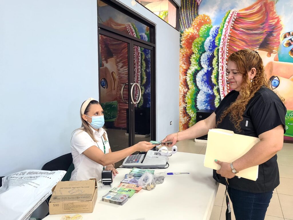De manera ordenada y segura, los servidores públicos de educación, hicieron efectivo su pago, desde las cajas móviles instaladas en el edificio central del MINED.