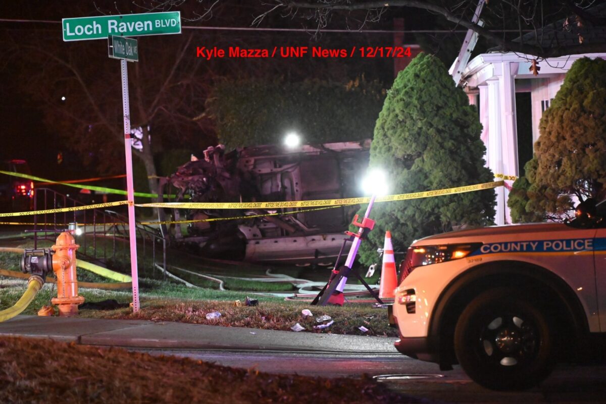 El jefe de policía del condado de Baltimore, Robert McCullough declaró que al llegar los primeros oficiales se observó un vehículo volcado y en llamas.