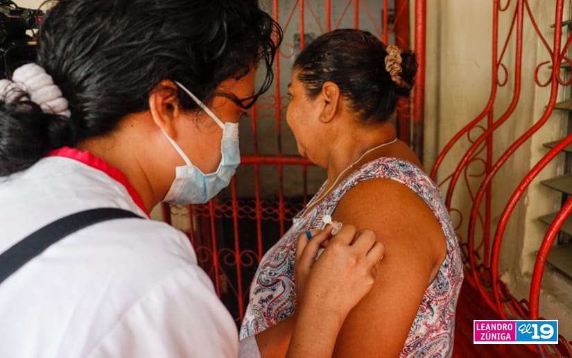 Familias del barrio Waspán Sur se vacunaron contra la Covid-19, durante la visita casa a casa que realizaron médicos y enfermeras del Centro de Salud Silvia Ferrufino.